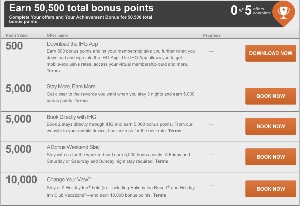 If I complete all five of my tasks, I'll earn an additional 25,000 points, for a total haul of 50,500 IHG Rewards points.
